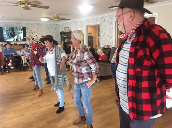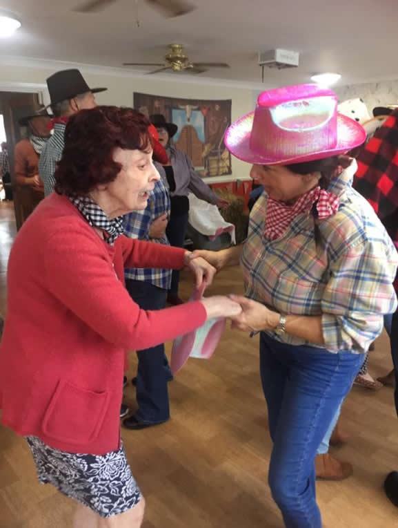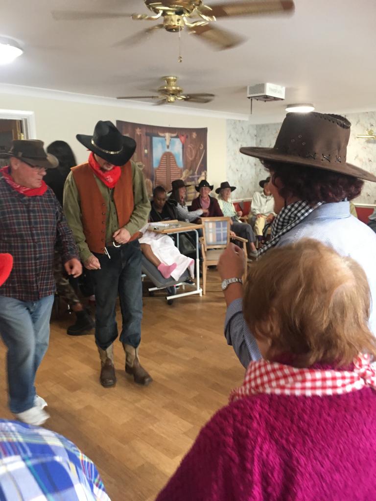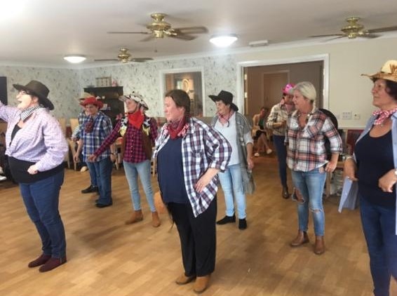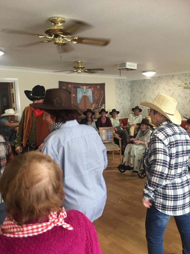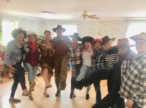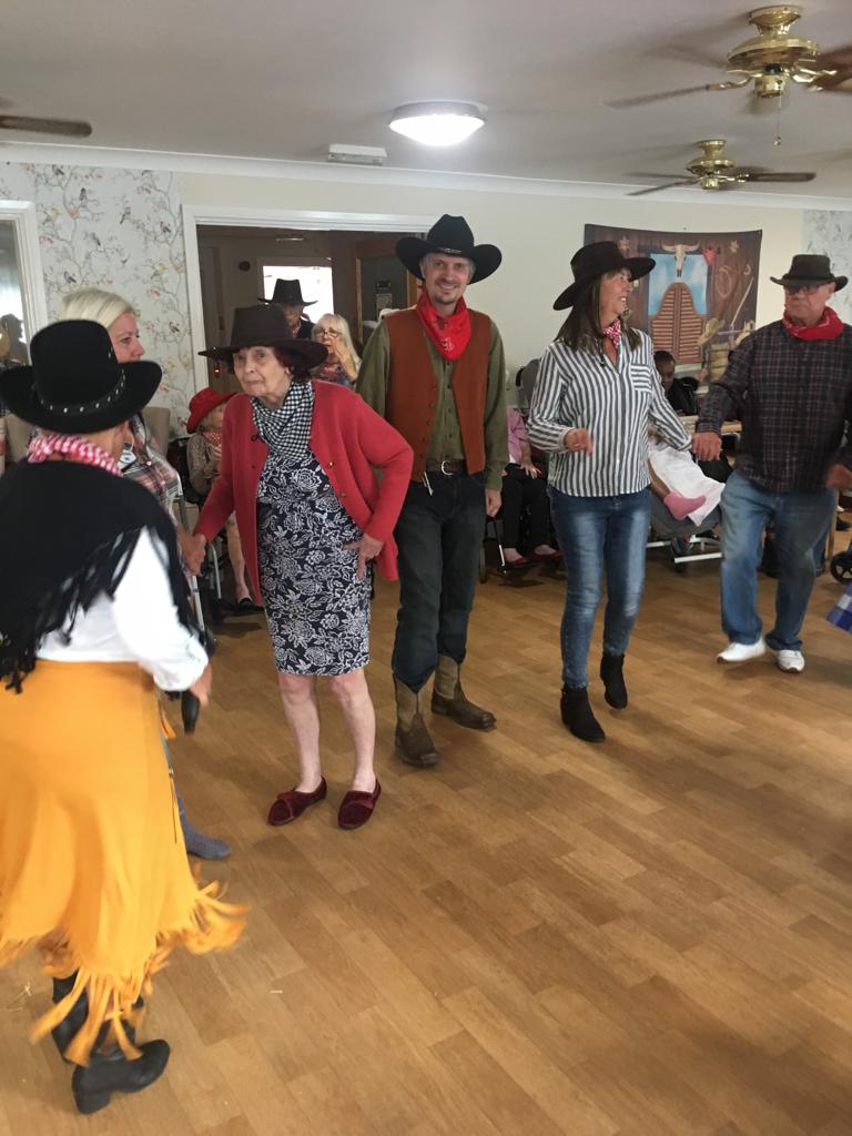 After numerous Grapevines, Heel Digs and Pivot Turns, everyone kicked up their heels to enjoy an extensive buffet, with favourites of residents and guests alike including the special spicy chicken, burgers and slaw. The only thing missing from the day was having a horse there too – something to keep in mind for next year!