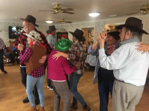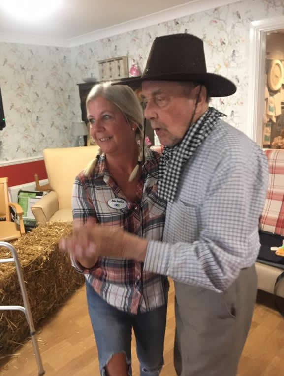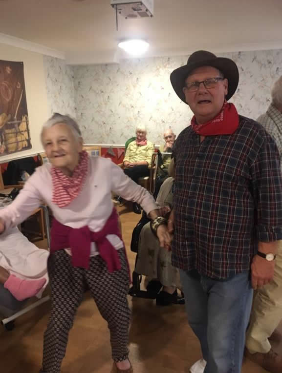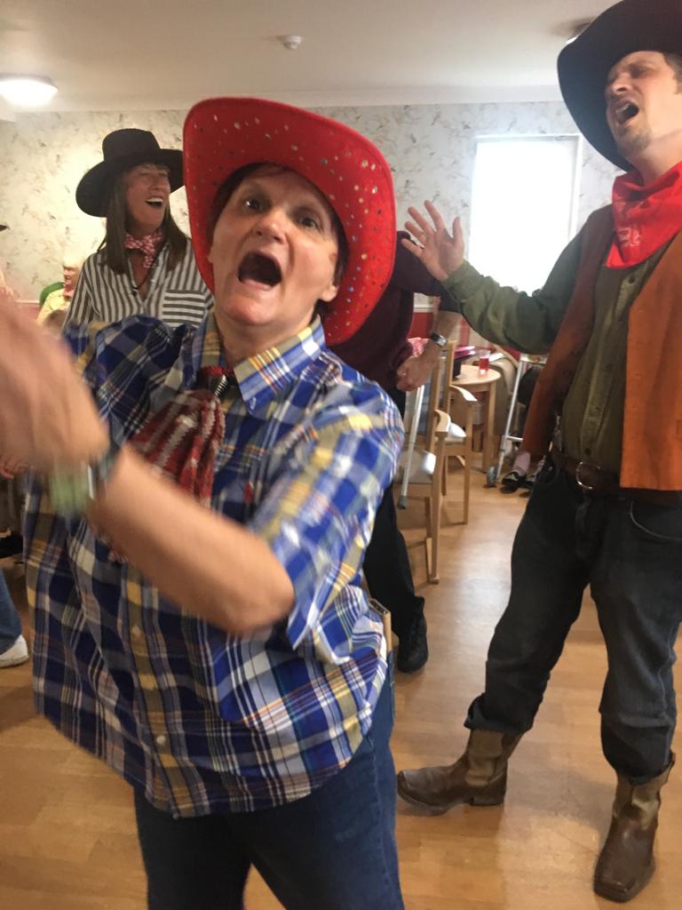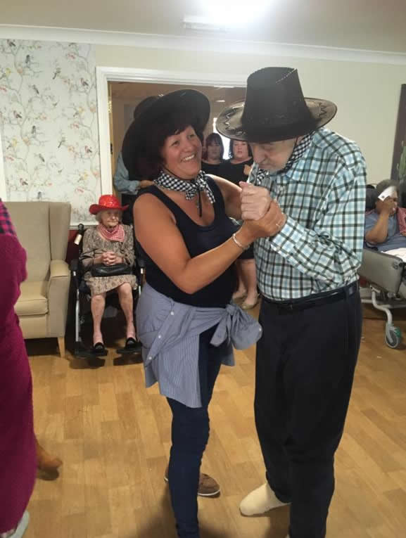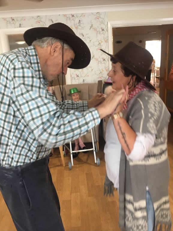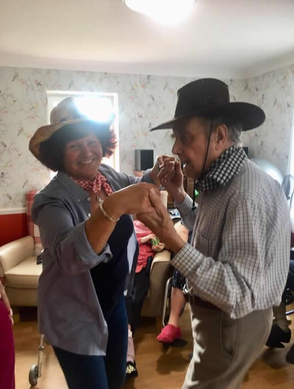 Brentwood Care Centre reached out to members of the local elderly community and invited visitors to participate in their activities. Celebrations at the dementia specialist care home included line dancing, games and live music by Angie Walker (a local performer). Our residents love any excuse to dress up in fancy dress and Silver Sunday was no exception with visiting guests, families and staff joining them in donning cowboy hats, neckerchiefs and chequered shirts to really show off their “ranch dressing”!