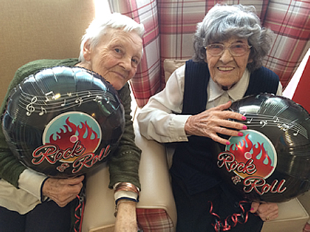 Still rocking on: Brentwood Care Centre residents Isobel Corden and Cathy Wheeler during the first request show in May 2018