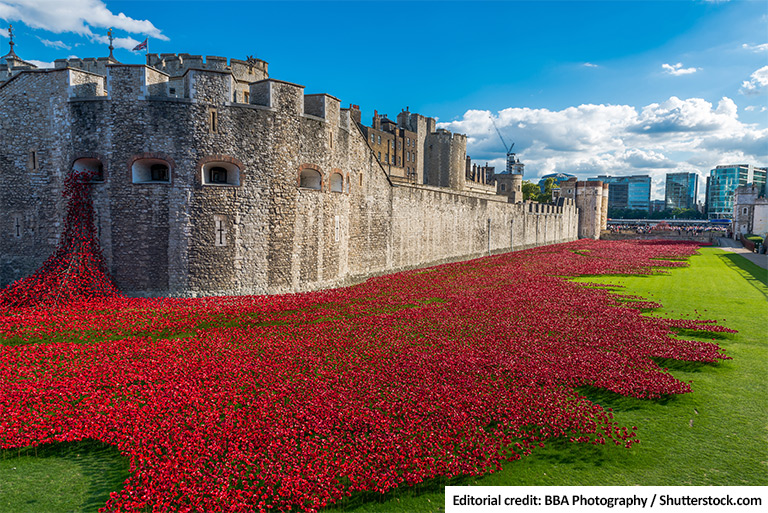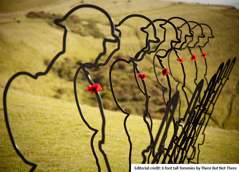 In 2014, in order to commemorate the centenary anniversary of the start of The Great War, The Tower of London’s moat famously turned into Blood Swept Lands and Seas of Red, an art installation where 888,246 ceramic poppies filled the moat, each poppy representing a British and Commonwealth military fatality during the war. Two years later, 51 transparent seated military figures were placed in Penshurst Church (Kent) by the local community as a living reminder of the 51 men from the tiny village who lost their lives in the war and ended up sparking a resonance which was felt throughout the country.