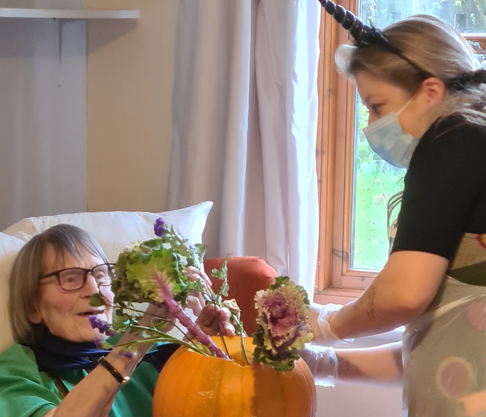 The craft sessions were followed with pumpkin carving in preparation for a competition to be held at the end of the week. “This takes me back to being a kid,” enthused 89-year-old Jean, one of the residents taking part in the carving. However, not all of the residents were impressed by their rivals’ efforts, “That one wouldn’t help us in the dark”, remarked 87-year-old Molly!