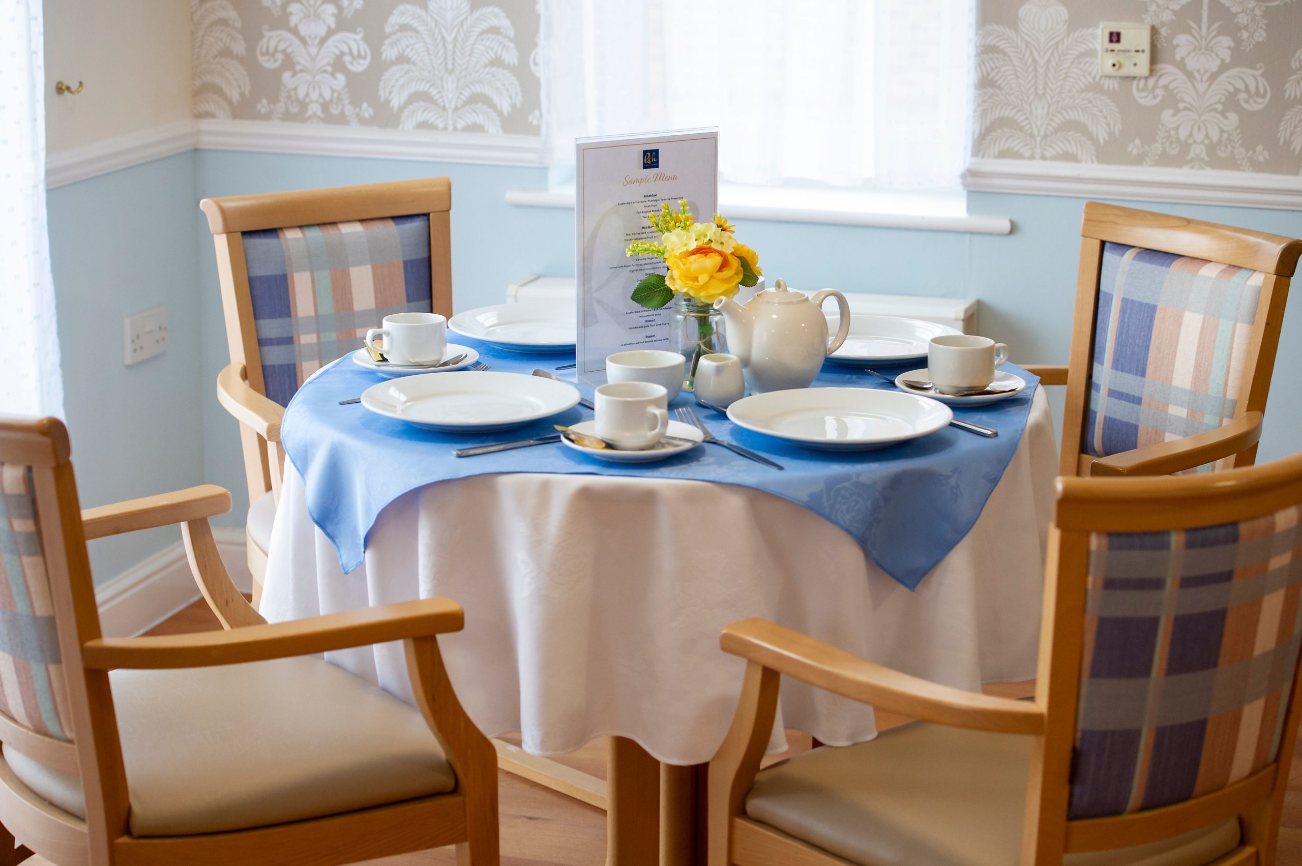 To create a welcoming and pleasant atmosphere for our residents to enjoy their mealtimes, our tables are lovingly laid with crisp table linen, menus clearly showing what’s on offer and cutlery and dinnerware which supports their independence.