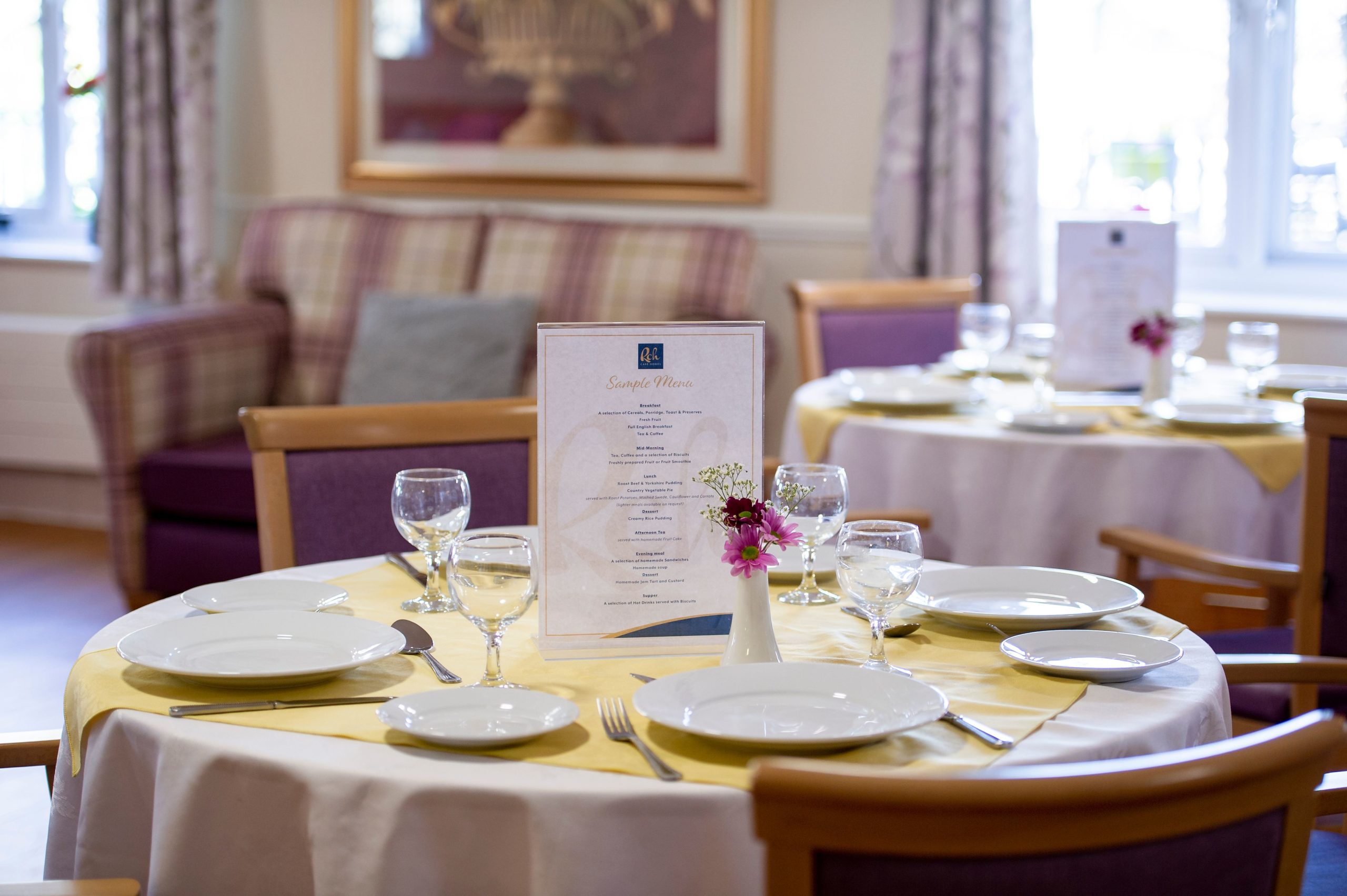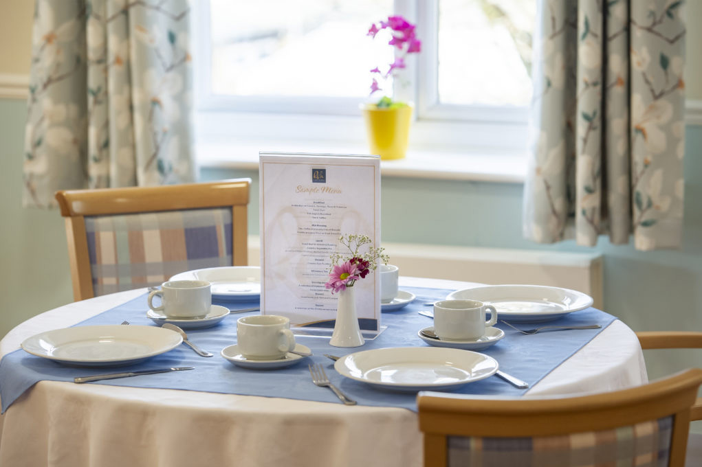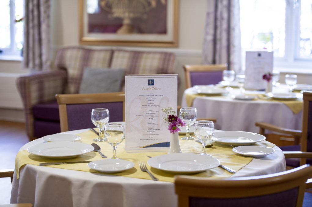 To create a welcoming and pleasant atmosphere for our residents to enjoy their mealtimes, our tables are lovingly laid with crisp table linen, menus clearly showing what’s on offer and cutlery and dinnerware which supports their independence.