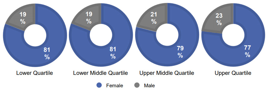 As part of the gender pay report, we also show the percentage of men and women in each pay quartile.