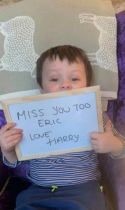 When Harry’s mum Charlie Oatham noticed a message from Eric, she showed it to Harry who instantly recognised him and asked what his friend was up to. Touched by her son’s response, Charlie responded to the Facebook post to let us know how much Harry was missing Eric and included a photo message back from Harry to Eric directly: “Miss you too. Love Harry”.